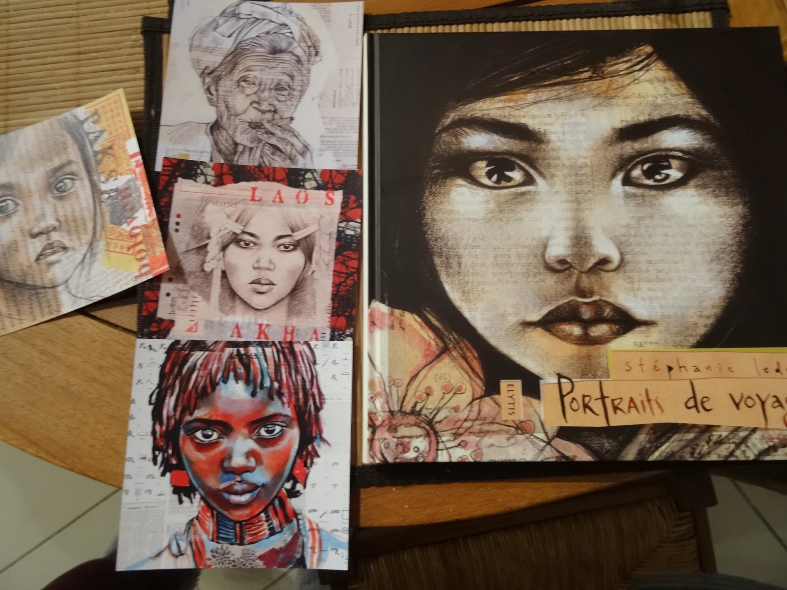 | Cartes postales (2€ l’une) et livre compilant plusieurs carnets de voyage, un vrai ouvrage d’art pour 30€ |