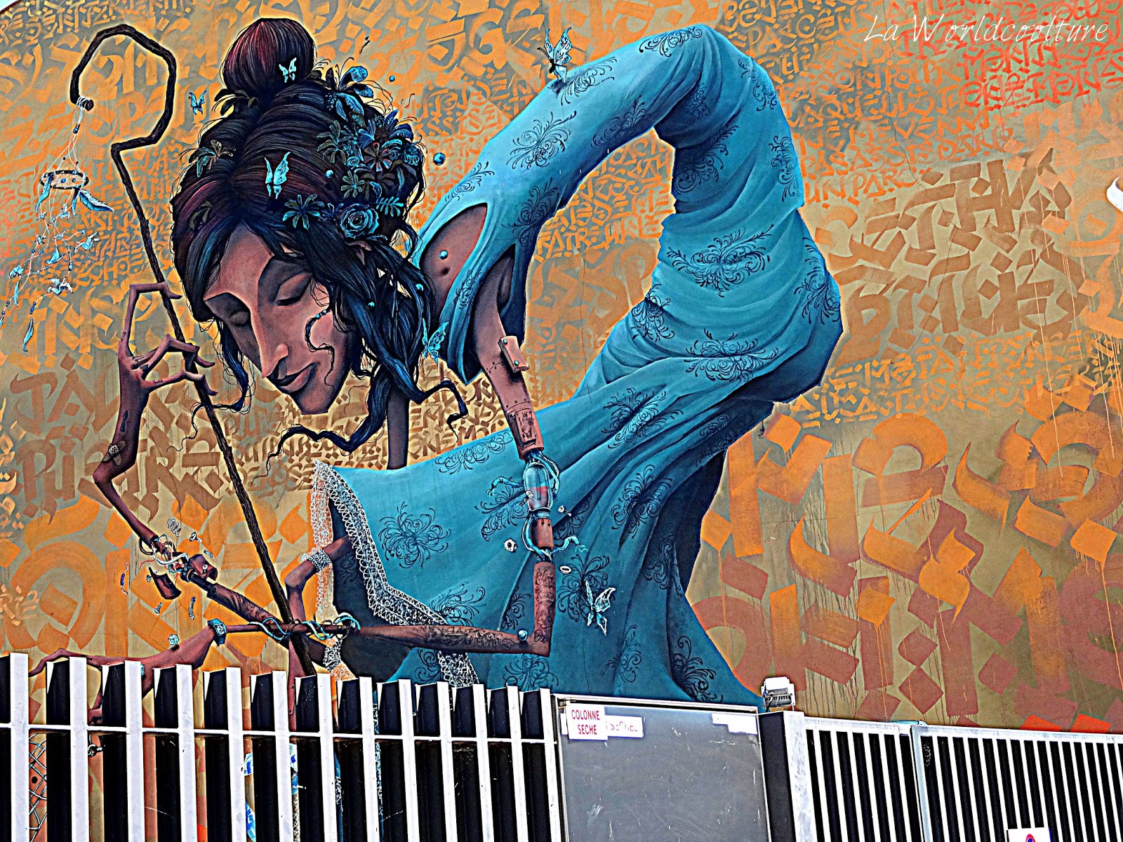 Je ne vais pas te mentir, il s’agit de ma fresque préférée lors du circuit ! J’ai adoré les détails de la dentelle (et réalisés à la BOMBE !) ainsi que les plis de la robe. On doit ce joli personnage délicat à Maye, un jeune artiste de 25 ans.