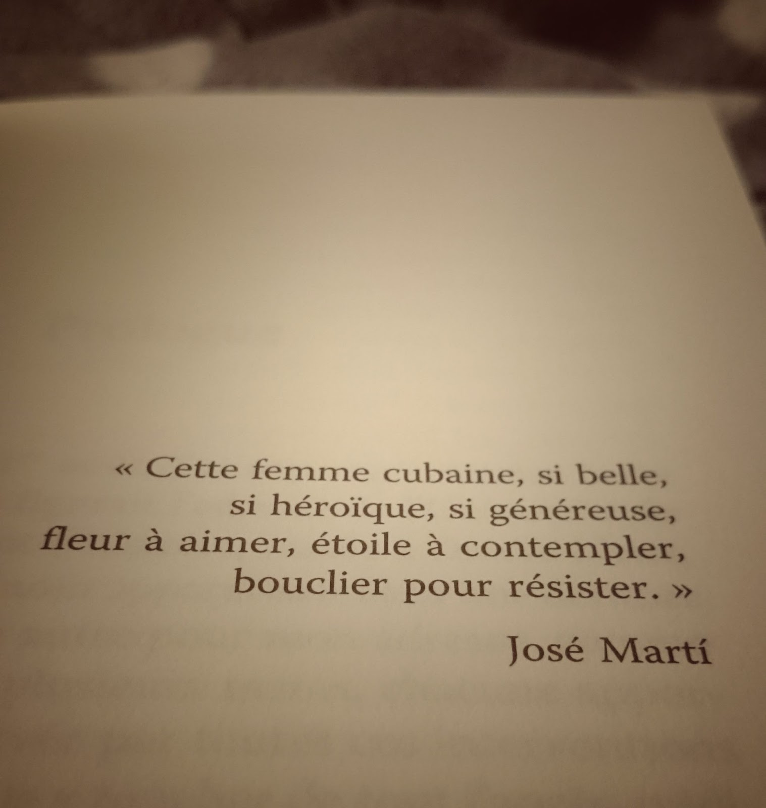 Si je commence à être bien informée sur la montée du castrisme et le rôle joué par le Che, j’ignorais tout des guerres d’indépendance et du rôle de Jose Marti, poète, politicien et donc personnage central de l’Histoire cubaine, que l’on retrouve partout et surtout dans toutes les bibliothèques du pays dans toutes les rééditions possibles. Ce livre apporte un éclairage sur cette période historique plus antérieure, moins connue des étrangers, et vécue de l’intérieur avec toute la subjectivité dont est capable une femme.